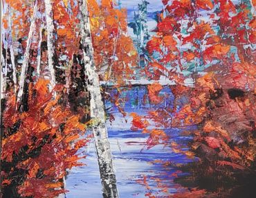 Carve out this painting with palette knife and a limited color palette on an 11x14 canvas board. Using a fall palette you will learn how amazing this tool is. Using acrylic paint learn about blending, floating and mark making. All supplies are provided, no experience necessary. Bring a box to transport your wet painting home. This will take approximately 24-48 hours to completely dry.