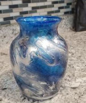 Create this alcohol Ink and Epoxy coated vase. This process is a two day process that requires you leave your piece overnight. Use of torch and low VOC epoxy is involved, so windows will be opened at one point in class, so dress appropriately. Speaking of dress… wear OLD clothing. The alcohol Ink stains and epoxy will not come out of your clothing and will harden (aprons will be provided, but your sleeves (if you wear them) tend to get epoxy on them. *Your second day for pick up can be at